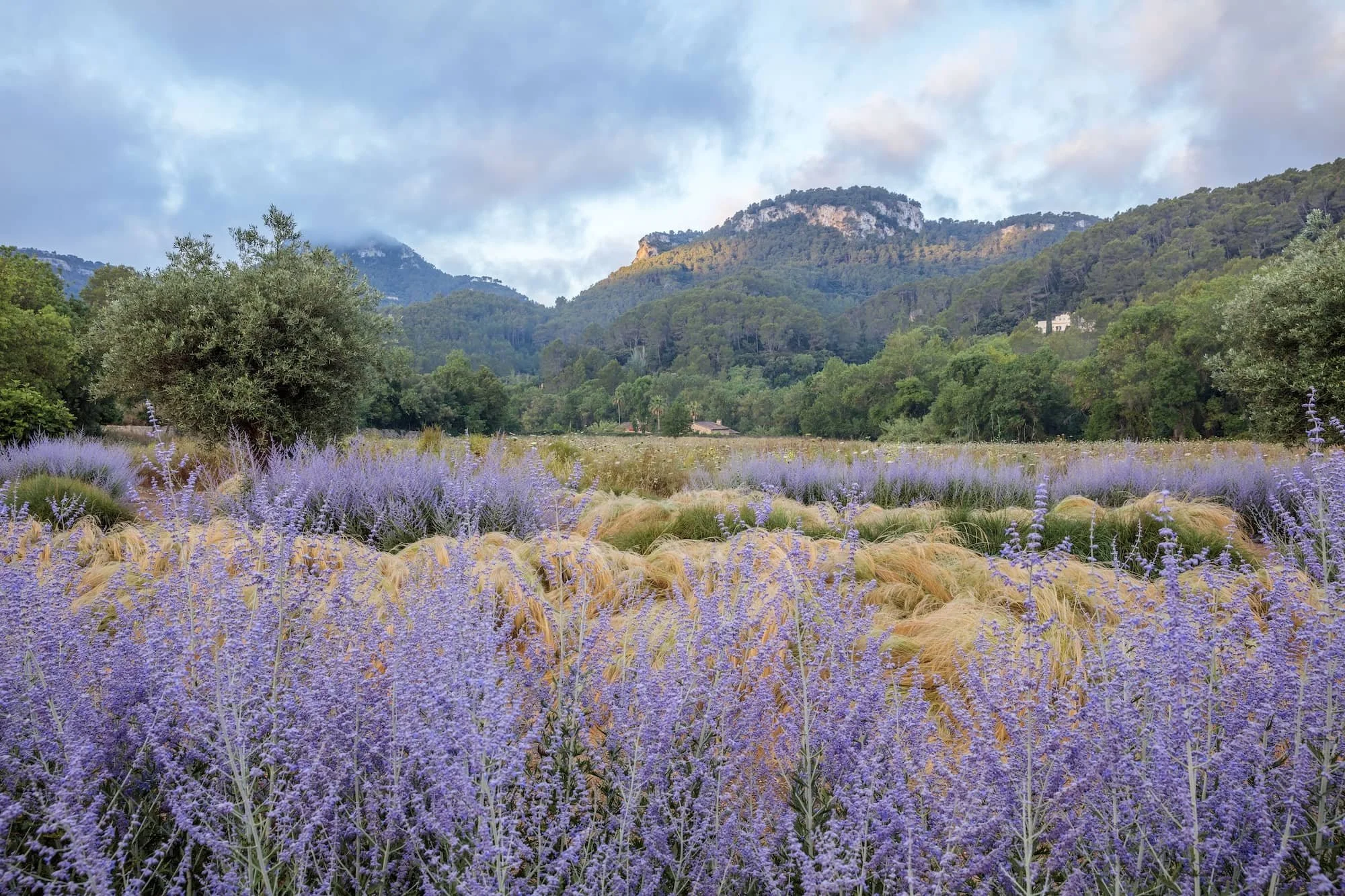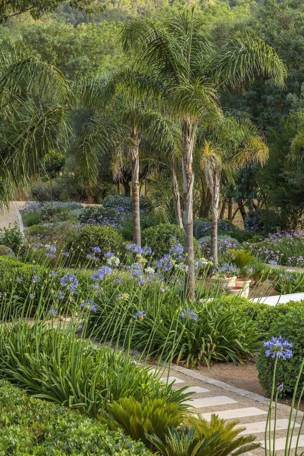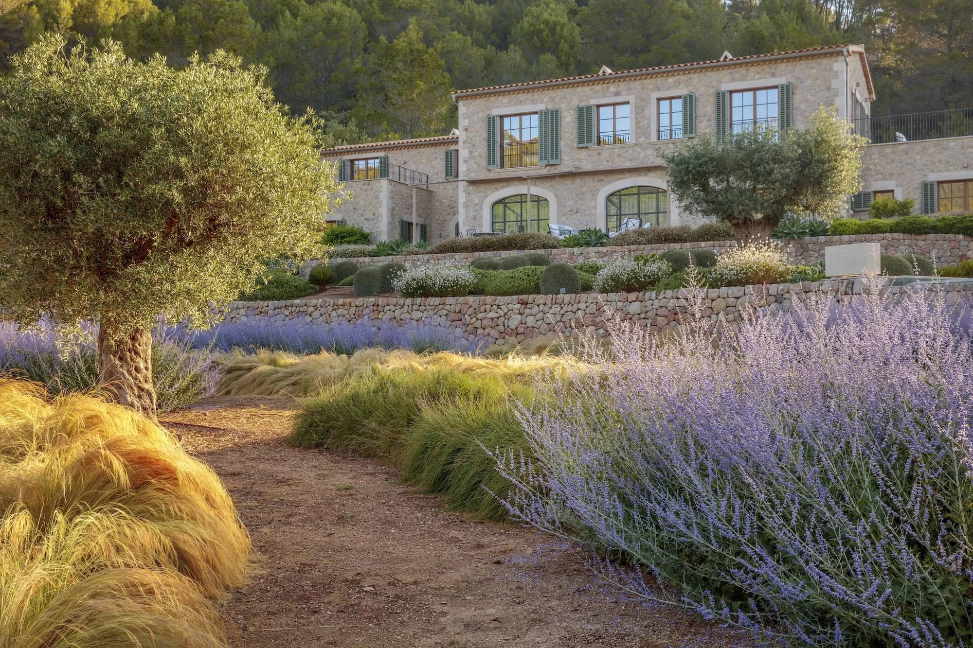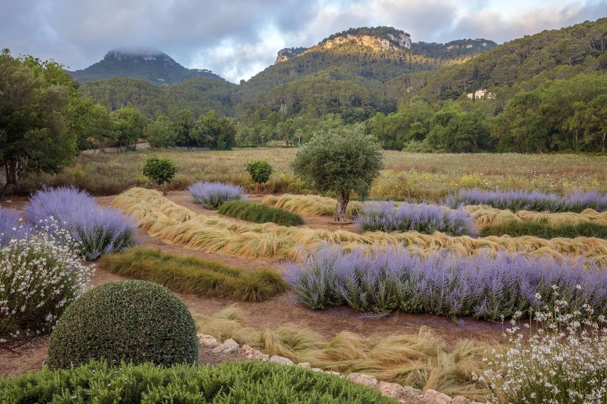 From there, the garden becomes more wild. Pathways of clouds wind through the natural contours of the land until the boundaries dissolve entirely into a meadow of stipa and perovskia — where the garden and Mallorca's wild landscape become one.