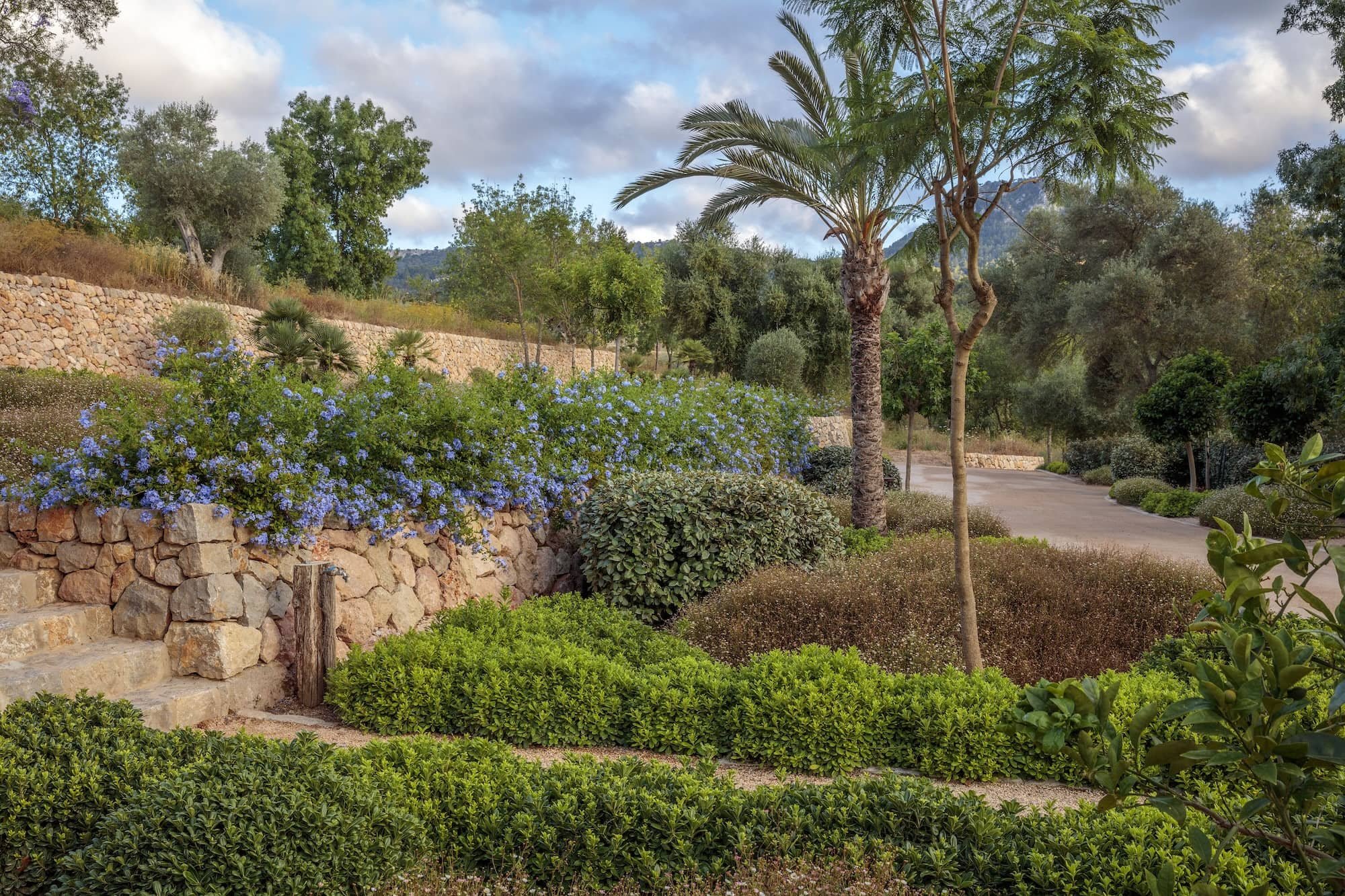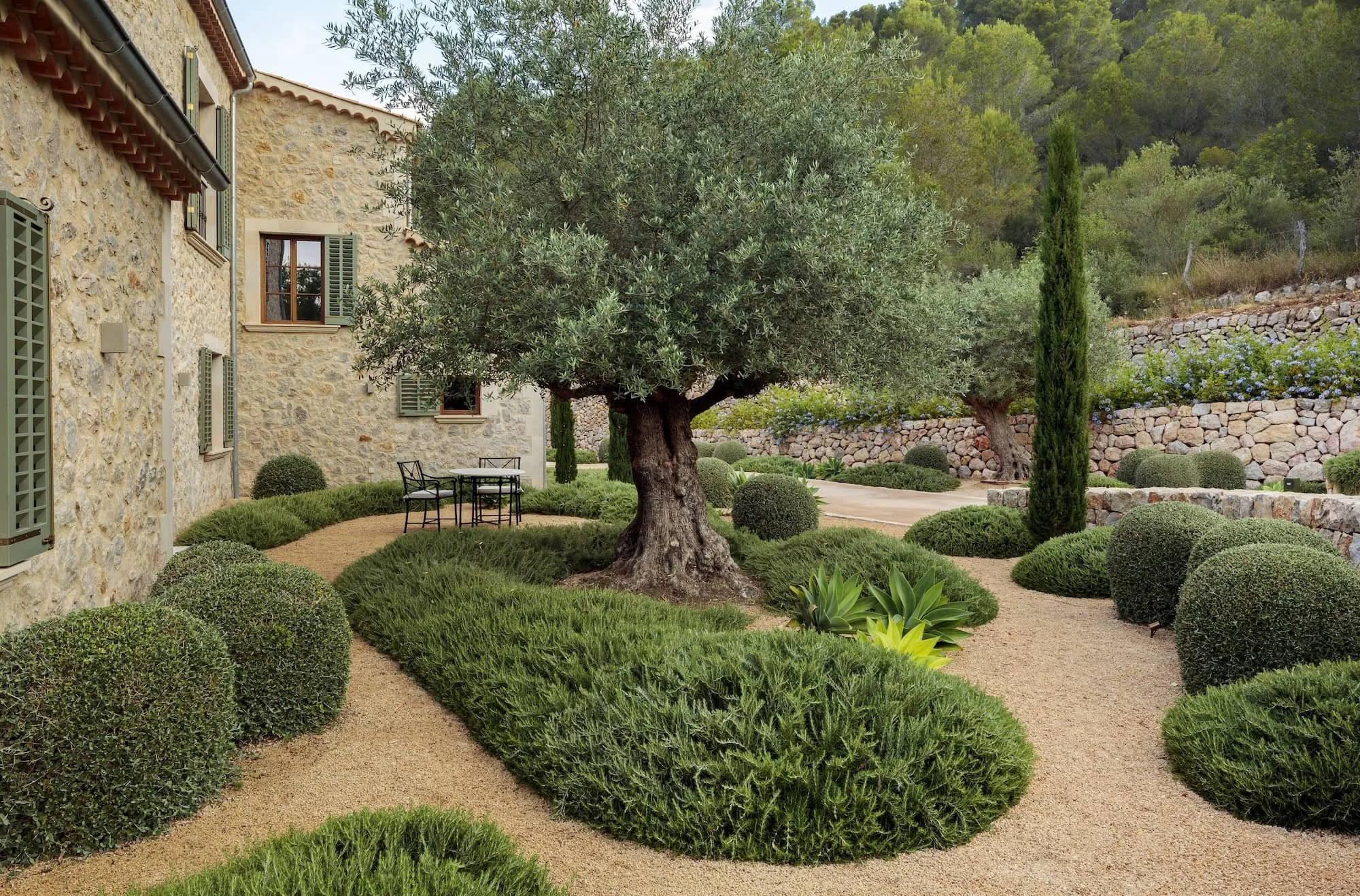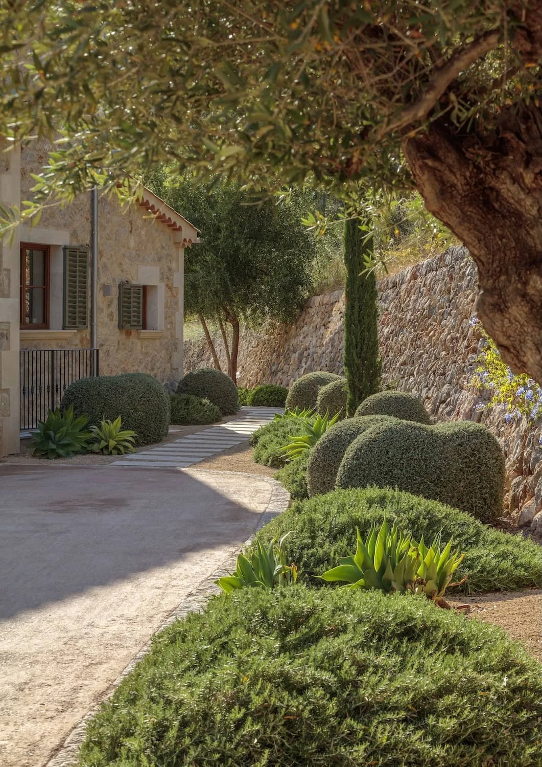 Set in a hidden valley of the Serra de Tramuntana, this garden blurs the line between the cultivated and the wild. Near the house, a relaxed cloud garden of lentiscus, rosemary and a feature olive sets an elegant yet unhurried tone. It’s formal enough to feel considered, yet soft enough to belong to the valley.