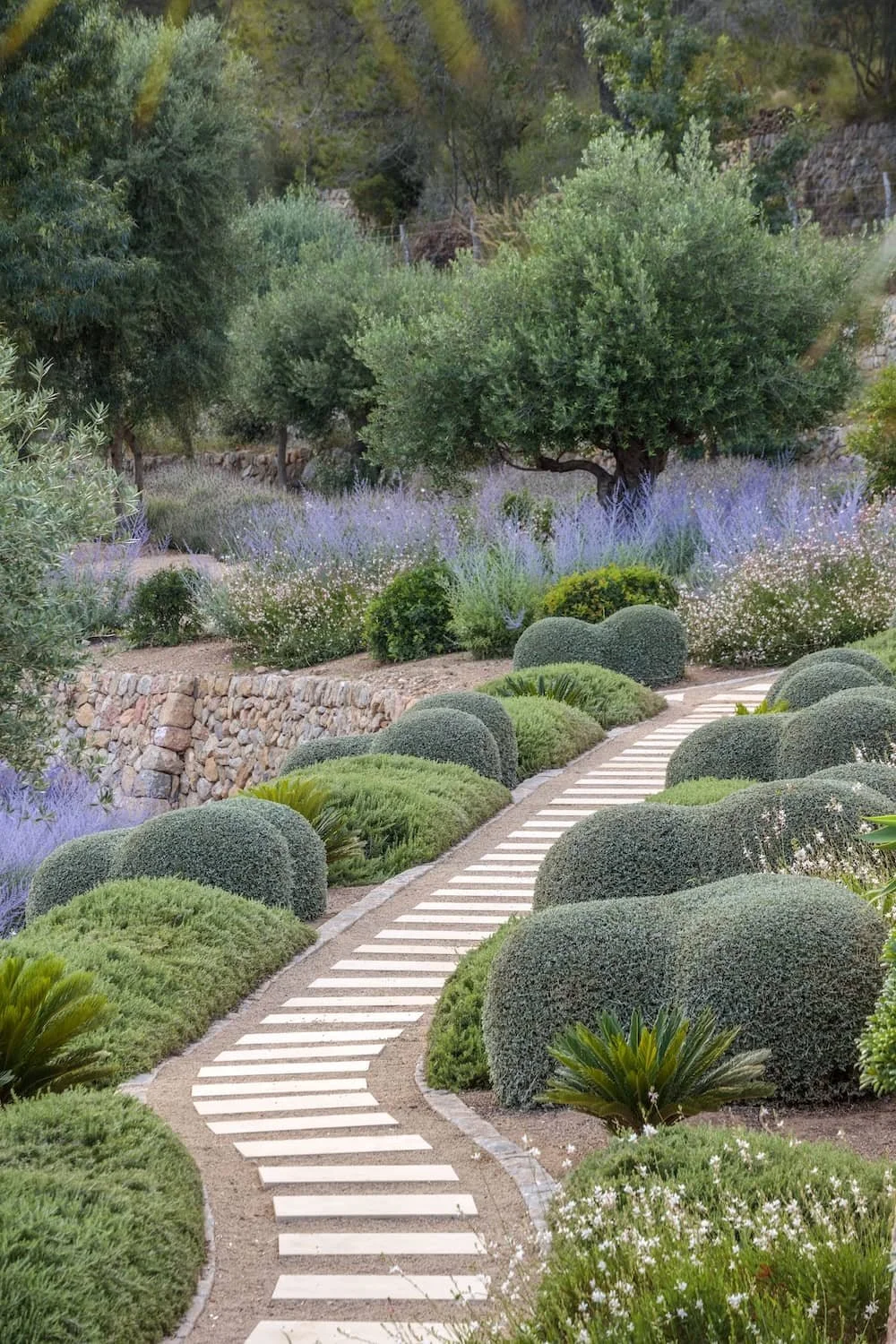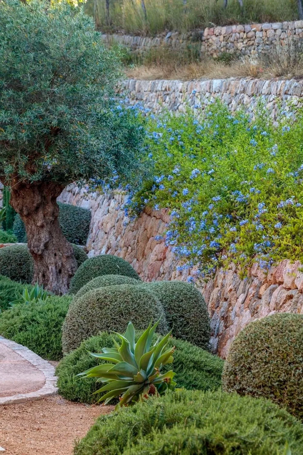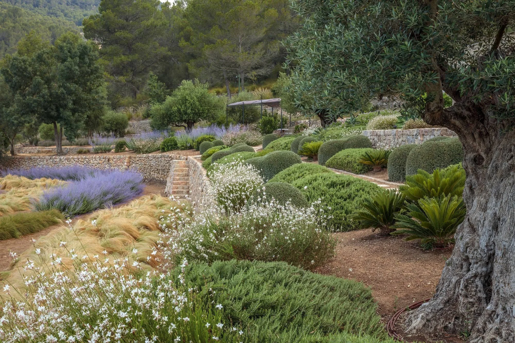Set in a hidden valley of the Serra de Tramuntana, this garden blurs the line between the cultivated and the wild. Near the house, a relaxed cloud garden of lentiscus, rosemary and a feature olive sets an elegant yet unhurried tone. It’s formal enough to feel considered, yet soft enough to belong to the valley.